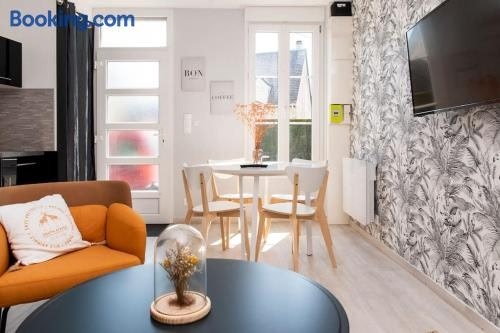 Beau duplex, proche zénith et palais des sports is located in Caen, 2.5 km from Botanical Garden of Caen, 3.5 km from Caen Station, as well as 3.9 km from Racecourse of Caen. The property is set 4.6 km from Festyland, 4.