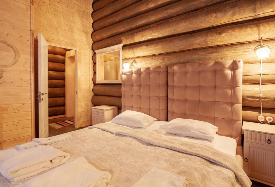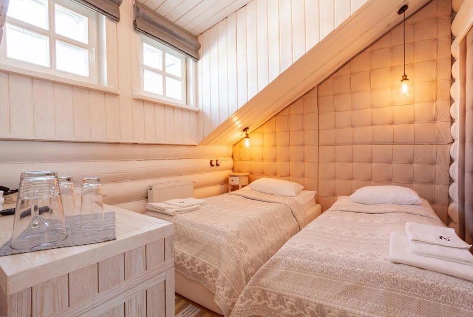Location Hotel «Vremena Goda Hotel Usadba» is located in Nagovie on the shores of a glacial lake.At the hotel All buildings on the territory are made by hand from wooden log cabins in the style of a traditional Russian estate. The main building of the hotel, the five-story log house «Terem» is one of the tallest wooden buildings in Russia. For guests in the main building there is a lobby bar and a gastronomic restaurant of Russian cuisine «Kuropatkin». The main building also has an open veranda, a spacious play area for children and a SPA area. There are 4 Russian steam baths on the territory of the hotel, as well as a premium-class bath complex «Khutor» with a relaxation room, a swimming pool and a spacious veranda for large companies. The hotel has a mini zoo and an eco-farm where guests can taste fresh dairy products. Also for the little guests of the hotel there are playgrounds and animation programs. In addition, guests can enjoy quad biking, fishing, snowmobiling and walking along equipped eco-trails. The main building of the hotel offers 26 comfortable, air-conditioned rooms. The hotel also offers two cottages with a panoramic view of Lake Nagovie, 4 townhouses with a common mezzanine and 2 wooden premium houses with an area of 200 sqm.