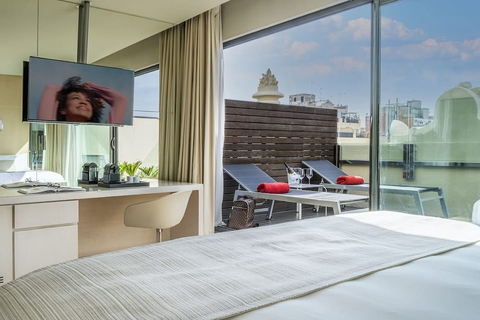 Hotel Cram Hotel is set in Barcelona’s central Eixample district, a 10-minute walk from Plaza Catalunya. It features a rooftop pool with city views and the Two Michelin Stars Angle Barcelona restaurant.