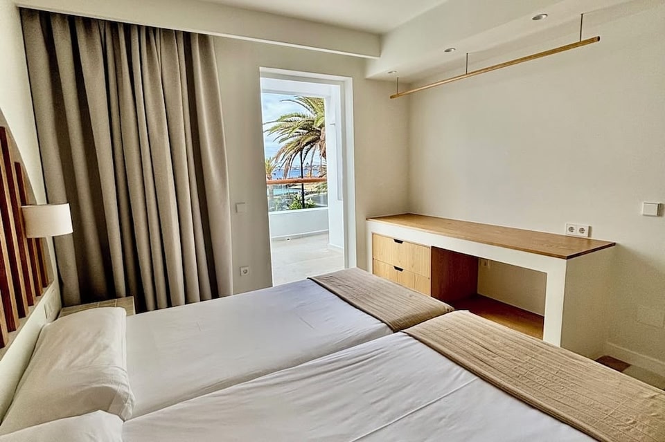 The oceanfront Neptuno Suites, in Lanzarote’s Costa Teguise, offer direct access to Jablillo Beach. Set around outdoor pools, each apartment has a safe and a private terrace, many with sea views.