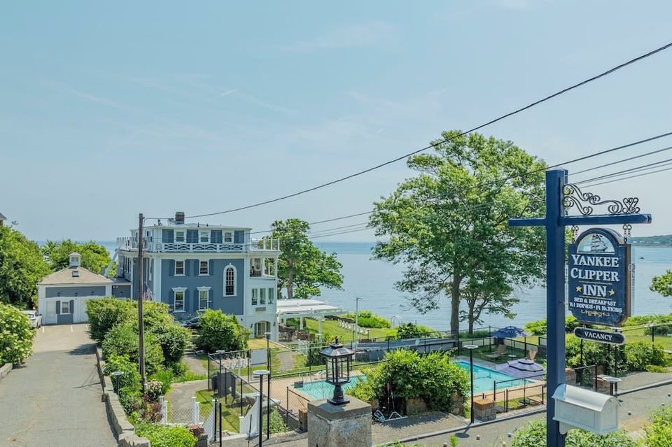 Overlooking the Atlantic Ocean, the Yankee Clipper Inn is a 1929 art deco mansion in the seaside town of Rockport, Massachusetts.