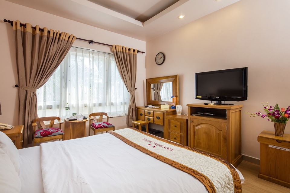 Located in District 7 neighborhood, Vien Dong Hotel Phu My Hung is connected to a shopping center. Starlight Bridge and Phu My Bridge are notable landmarks, and travelers looking to shop may want to visit SC VivoCity and The Cresent Mall. Saigon Exhibition and Convention Center is another place to visit that comes recommended. Family-friendly hotel with free valet parking connected to a shopping center in Ho Chi Minh CityA nightclub, a bar/lounge, and a snack bar/deli are available at this hotel. Free WiFi in public areas and free valet parking are also provided. Other amenities include a rooftop terrace, a conference center, and a business center. Vien Dong Hotel Phu My Hung offers 34 accommodations with washers/dryers and minibars (stocked with some free items). Beds feature memory foam mattresses. 32-inch flat-screen televisions come with cable channels. Guests can make use of the in-room rice cookers and minibars. Bathrooms include bathtubs or showers with deep soaking bathtubs and rainfall showerheads. Bathrooms are also outfitted with slippers, bidets, and complimentary toiletries. Guests can surf the web using the complimentary wired and wireless Internet access. Business-friendly amenities include complimentary weekday newspapers and safes, as well as phones; local, long-distance, and international calls are all complimentary (restrictions may apply). Additionally, rooms include complimentary bottled water and hair dryers. Microwaves and refrigerators can be requested. A nightly turndown service is provided and housekeeping is offered daily.
