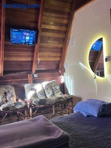 Located in Chapada dos Guimarães in the Mato Grosso region, Chalé da Chapada provides accommodation with free WiFi and free private parking. This 1-bedroom holiday home will provide you with a flat-screen TV, air conditioning and a living room.