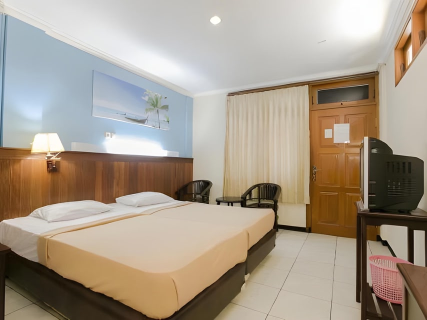 Mutiara Timor Hotel is located in Pucang Sewu, 3.1 km away from Mirota Batik & Handicraft Surabaya. The hotel provides a free public parking area for guests who drive. There is also a shared lounge and a designated smoking area to relax. Free WiFi is accessible in public areas. Some rooms have seating areas with tiled floors or wooden flooring. Air conditioning and a flat-screen TV are equipped in all rooms. It includes a wardrobe, a mirror, a table and coffee/tea making facilities. Towels, free toiletries and shower facilities can be found in the en suite bathroom. The hotel is surrounded by plenty of eateries. You can dine in at McDonald's Darmo which is located within 3.1 km, Pizza Hut is reachable in a 10-minute drive or at Sate Taichan Goreng Surabaya within an 8-minute drive from the hotel. Housekeeping is provided daily for free. You can approach the staff at the 24-hour front desk who will be happy to help you with taxi booking. They can also provide sightseeing tips or local cuisines recommendations. You can reach Taman Flora Bratang Surabaya by taking a 10-minute drive, Surabaya Zoo within 3.3 km and Ciputra World Surabaya by taking a 20-minute drive from Mutiara Timor Hotel. Juanda International Airport can be reached by taking a 35-minute drive while Wonokromo Train Station is an 8-minute drive away from the property.