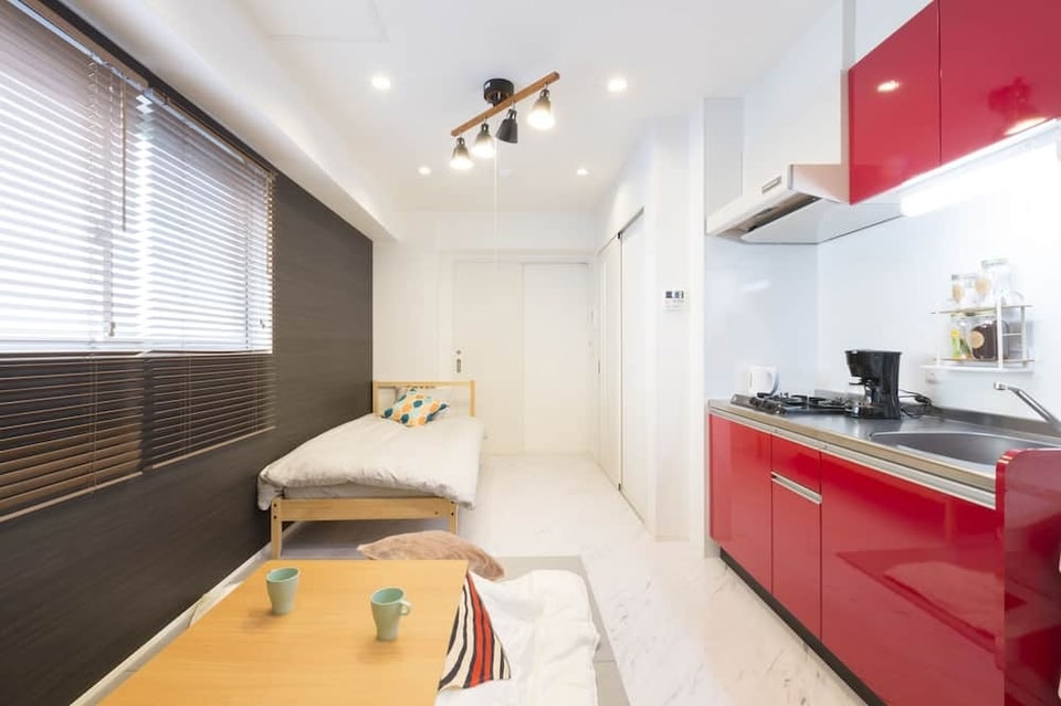 Minami, a neighborhood in Osaka, is home to this apartment. Nipponbashi and Kuromon Market are worth checking out if shopping is on the agenda, while those wishing to experience the area's popular attractions can visit Osaka Aquarium Kaiyukan and Legoland Discovery Center. Check out an event or a game at Kyocera Dome Osaka, and consider making time for Universal Studios Japan, a top attraction not to be missed. Located in Osaka, this welcoming apartment lets you experience it all. You're conveniently located within a 5-minute walk of Nipponbashi and Kuromon Market. If you're looking to expand your horizons and see other nearby locales, you can catch a train at either Kitntetsu-Nipponbashi Station, a short 8-minute walk away, or Osaka-Namba Station, 14 minutes away. As you settle into the place, you'll find climate-controlled air-conditioning and a desk. Enjoy the free WiFi and TV. You can also use the deep soaking bathtub, plus other bathroom amenities like free toiletries, a toilet with electronic bidet, and slippers. The kitchenette is equipped with a stovetop, a refrigerator, a microwave, and cookware. And there's a washing machine, so you can even pack a bit lighter.