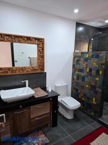 Marabunta studio 位在 Mauritius,有私人游泳池和 WiFi(免費)。這間住宿距離黑河瀑布(Les Chute's de Riviere Noire) 22 公里,設有露台和免費私人停車位。 這間空調公寓有 1 間獨立臥室、起居室、設備齊全的廚房,以及 1 間衛浴。住宿提供平面電視。 Marabunta studio 距離拉吉夫甘地科學中心(Rajiv Gandhi Science Centre) 27 公里,距離樂派莊園(Domaine Les Pailles) 28. ..