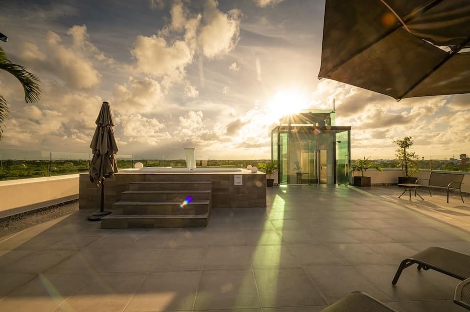 KABAH Cancun Hotel Boutique features an outdoor swimming pool, fitness centre, a shared lounge and terrace in Cancún. Each accommodation at the 5-star hotel has city views, and guests can enjoy access to a hot tub.