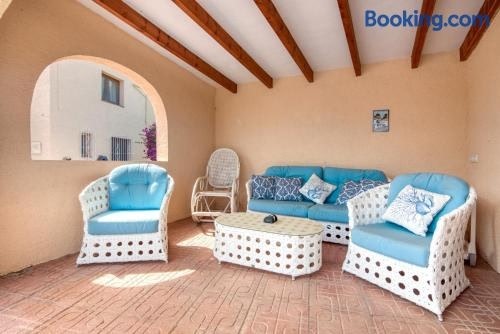 Situated in Teulada, 2.5 km from Playa de l'Ampolla and 18 km from La Sella Golf, Villa Shalimar Moraira features air-conditioned accommodation with a balcony and free WiFi. This villa has a private pool, a garden and barbecue facilities.